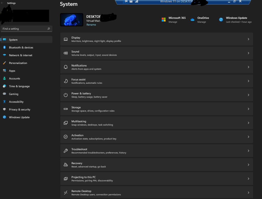 - Maximizing the window size – Once you install Windows 11 in your VM and if you, like me, use a large monitor, you will see issues when you use an ‘Enhanced Session’ in the VM or try to change the VM window display size by using the slider of the VM properties. The VM will not even show you the login screen (at least for me). So instead of changing the VM Settings, login to Windows 11 and change the ‘Display Settings’. Here choose the right resolution you need (Best to match to resolution of the desktop / laptop that hosts the VM) and viola!.
